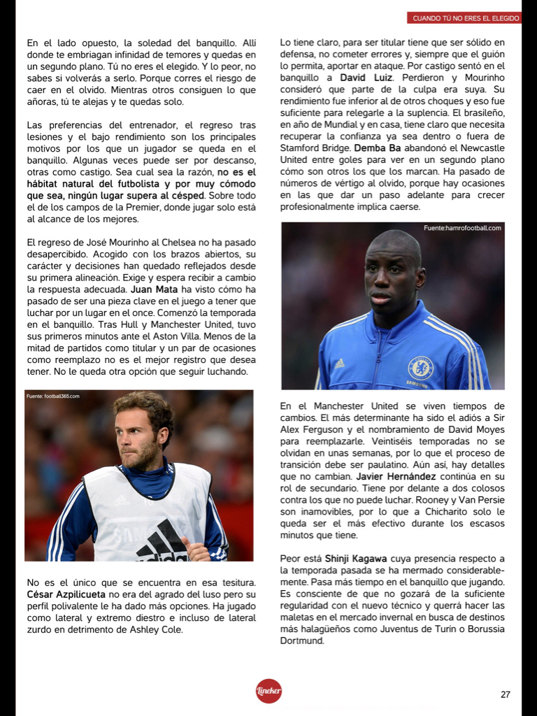 Cuando tú no eres el elegido Publicado el 12 enero, 2014 por Montserrat García Bea Deja un comentario Artículo publicado en el nº15 de Lineker Magazine (Diciembre 2013) Comparte esto: Haz clic para compartir en X (Se abre en una ventana nueva) X Haz clic para compartir en Facebook (Se abre en una ventana nueva) Facebook Haz clic para compartir en Telegram (Se abre en una ventana nueva) Telegram Haz clic para compartir en WhatsApp (Se abre en una ventana nueva) WhatsApp Haz clic para compartir en LinkedIn (Se abre en una ventana nueva) LinkedIn Haz clic para imprimir (Se abre en una ventana nueva) Imprimir Haz clic para enviar un enlace por correo electrónico a un amigo (Se abre en una ventana nueva) Correo electrónico Me gusta Cargando... Relacionado Etiquetado con chicharito, iago aspas, Lineker Magazine, Premier Fútbol Lineker Magazine Premier