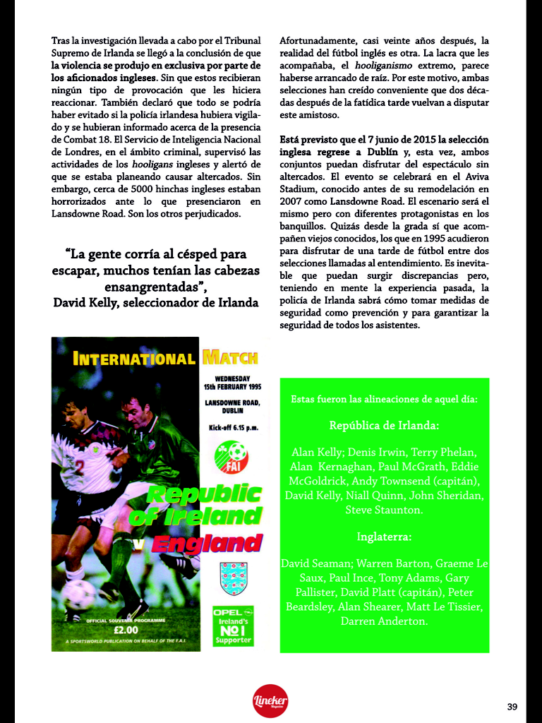 Artículo escrito para el nº21 de Lineker Magazine (junio 2014)